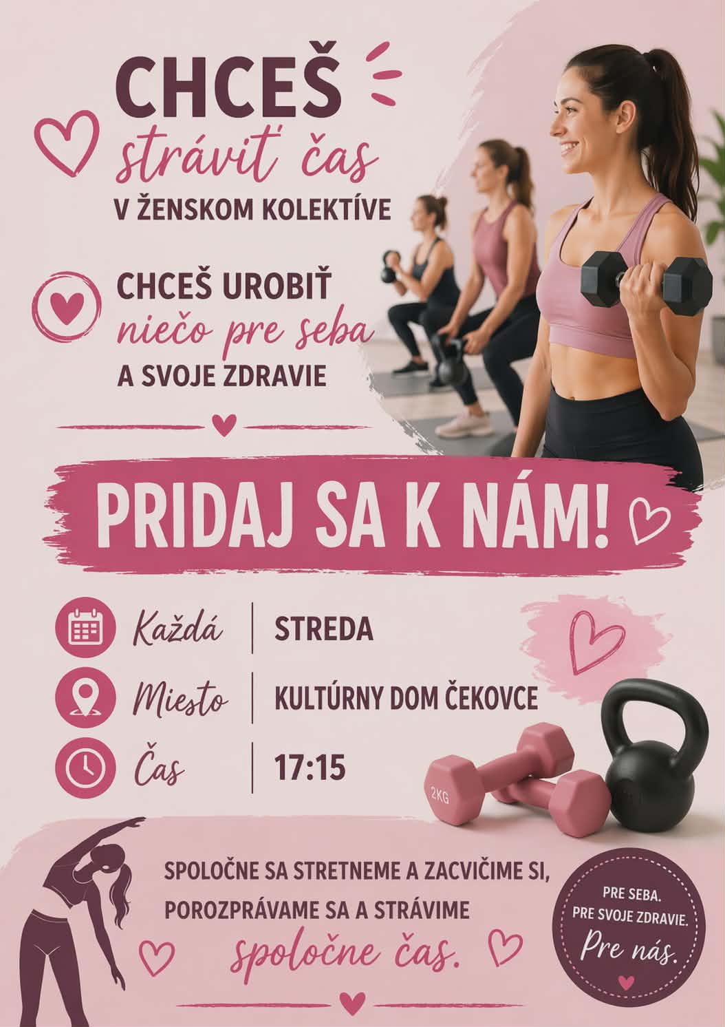 Milé ženy, žienky, dievčatá, pridajte sa k nám, každá streda o 17:15 hod.